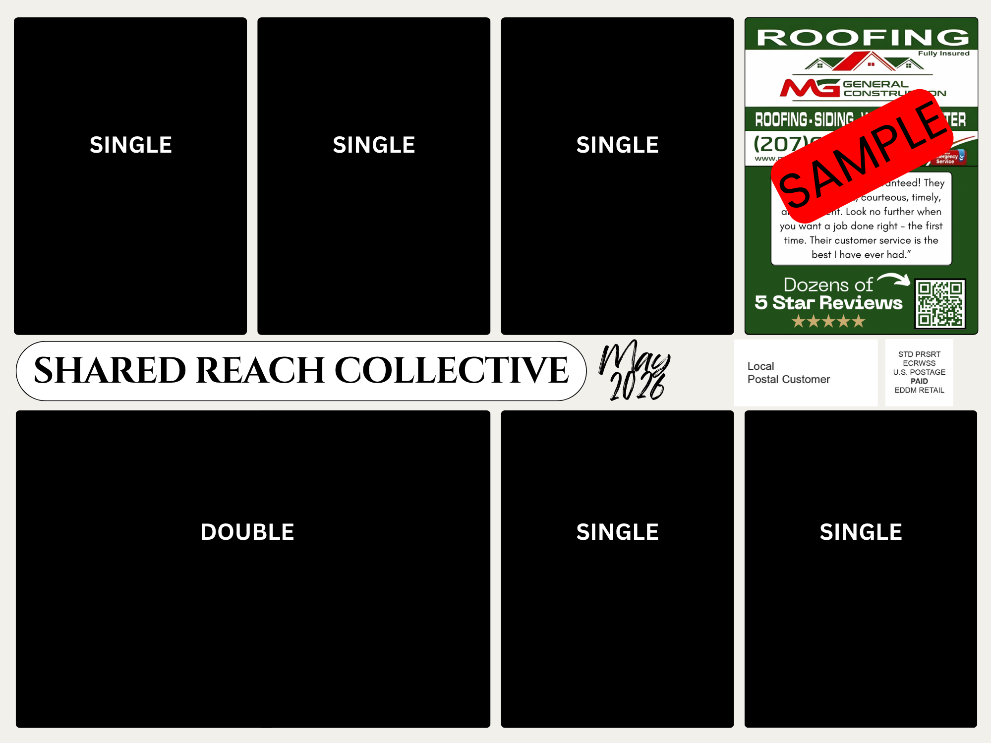 Advertising businesses can join our monthly postcard mailer to reach local residents with targeted offers. Spots are limited to ensure exclusivity, so sign up early to reserve your spot!